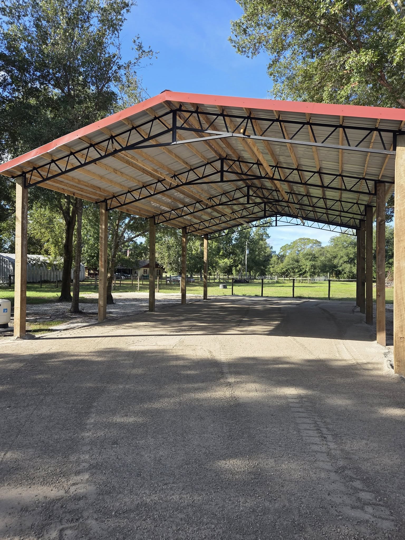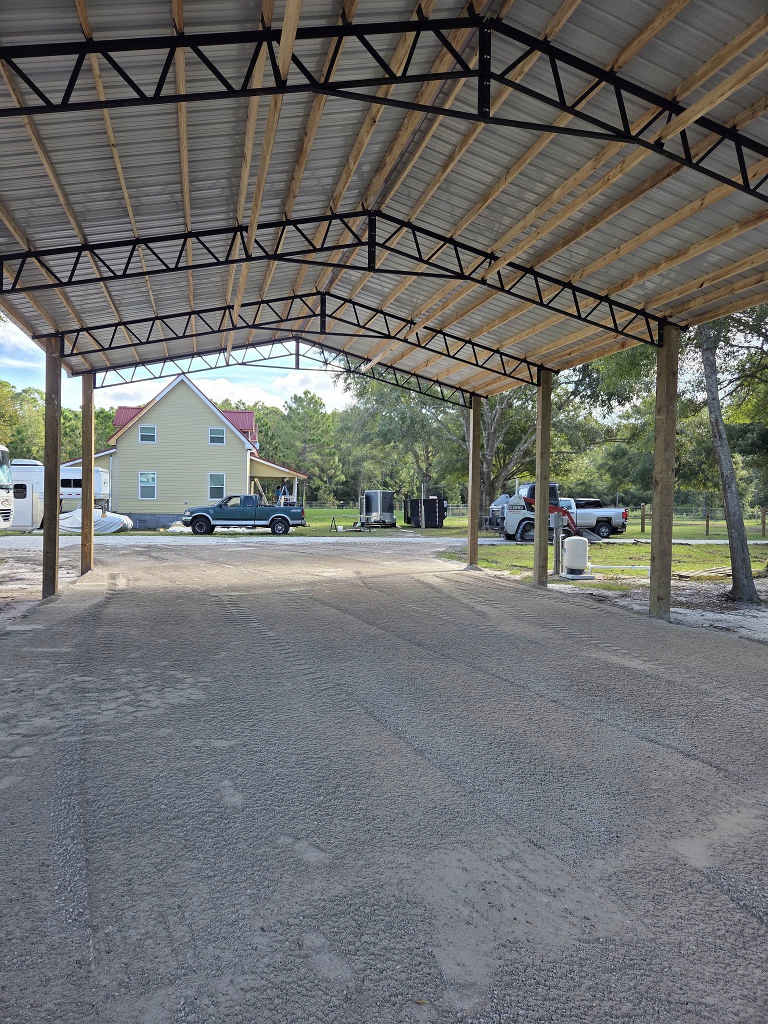 36 yards of concrete fines installed under a pole barn for a customer in Mims.